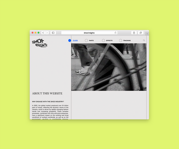 Diese Diplomarbeit zielte darauf ab, das Problem der "Fast Fashion" zu thematisieren, speziell im Bereich der Schuhherstellung. Der Fokus liegt darauf, das Bewusstsein für den nachhaltigen Umgang mit Ressourcen zu stärken, neue Denkanstöße zu geben und Menschen dazu zu inspirieren, ihr Konsumverhalten zu überdenken. Dafür wurde eine Webseite, eine App und ein Buch entwickelt, die die fragwürdigen Praktiken in der Schuhindustrie aufzeigen sollen.